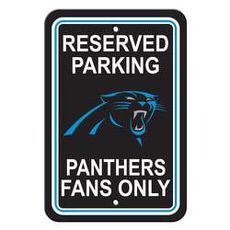 NFL CAROLINA PANTHERS RESERVED PARKING SIGN by Big Fan Arena is officially licensed and one of our favorite items. It's an ideal decoration for any room at home or in the office. Made of flexible styrene the sign measures 12" x 18" and features vivid team colors.