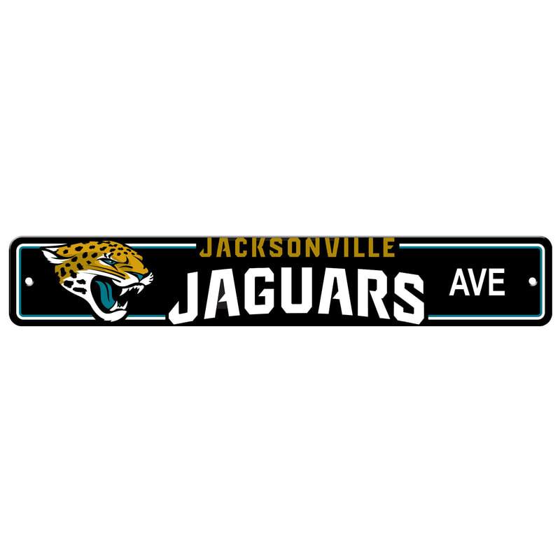 NFL JACKSONVILLE JAGUARS STREET SIGN by Big Fan Arena is officially licensed and one of our favorite items. It's an ideal decoration for any room at home or in the office. Made of flexible styrene the sign measures 4" x 24" and features vivid team colors